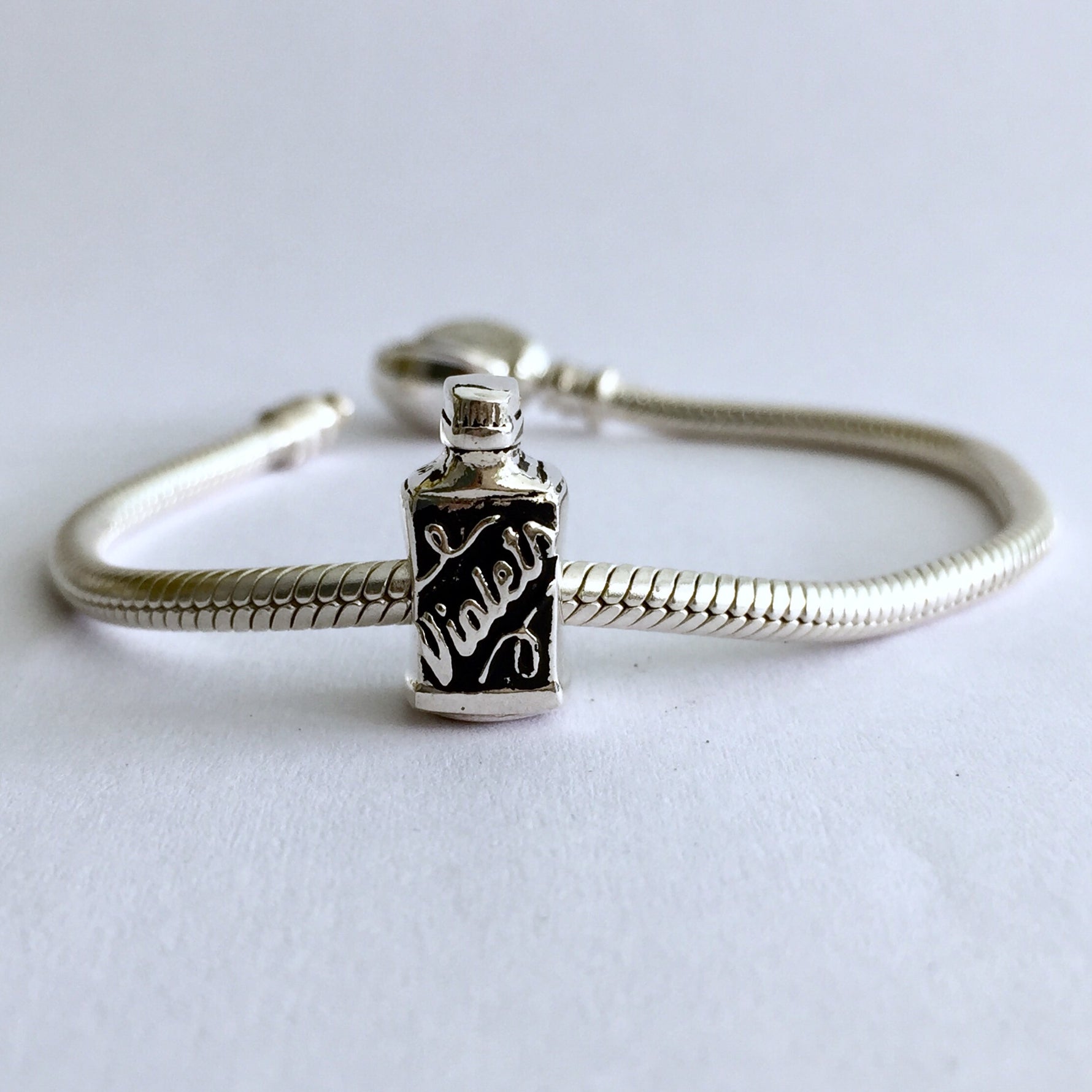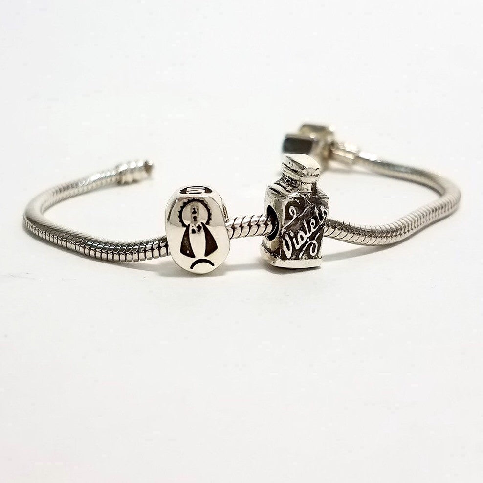 Sterling silver Violetas Charm for bracelets.