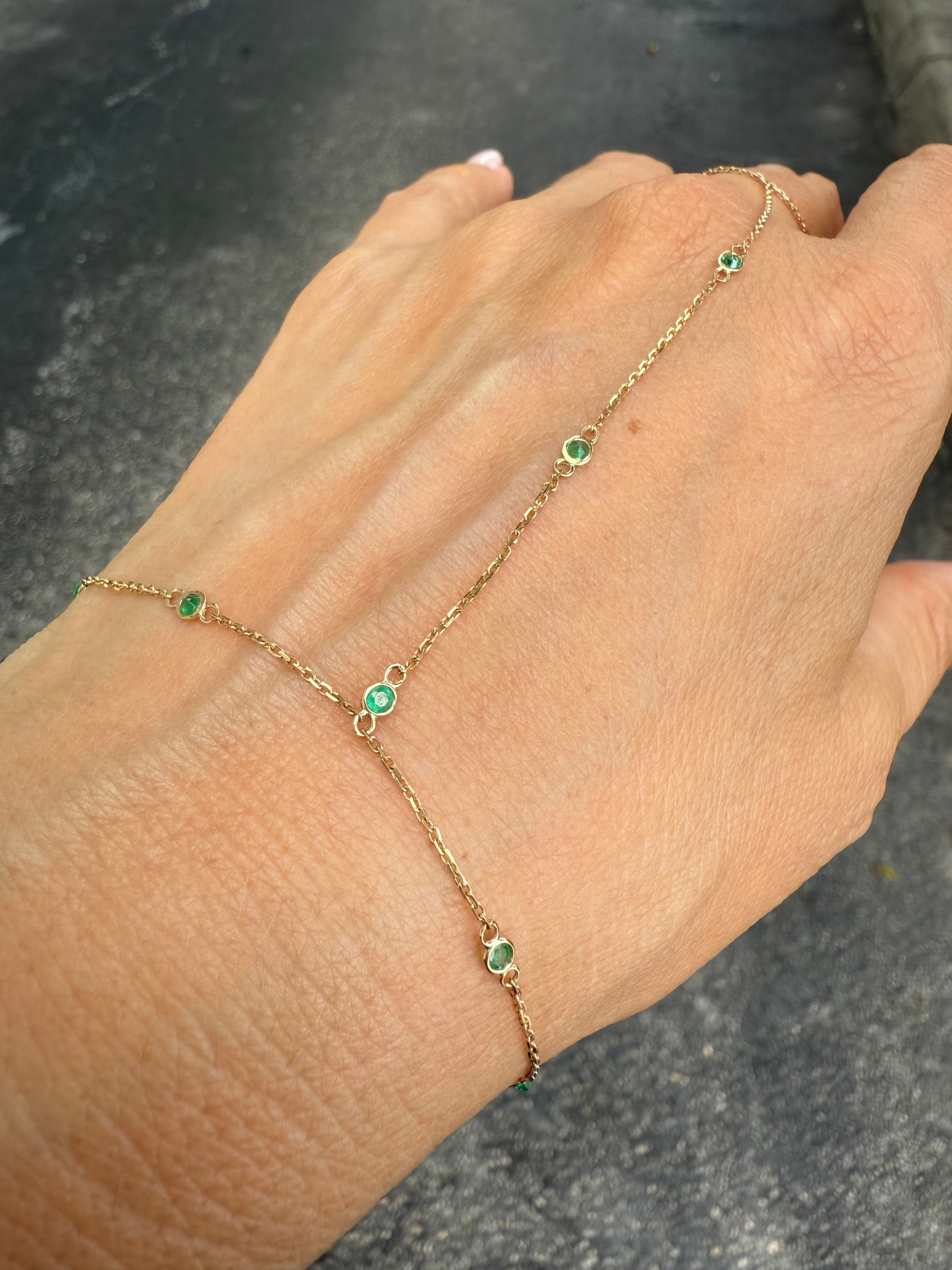 Delicate 14k gold with pops of natural emeralds, it drapes from wrist to finger like you're about to make a dramatic entrance (or just sip your cafecito with flair).