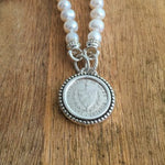Medium Size Crest on Beaded Bezel Necklace on Freshwater Pearls