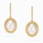 These mabe pearl drops float just beneath the ear, each one naturally domed and uniquely luminous, wrapped in a halo of diamonds for that perfect kiss of sparkle.