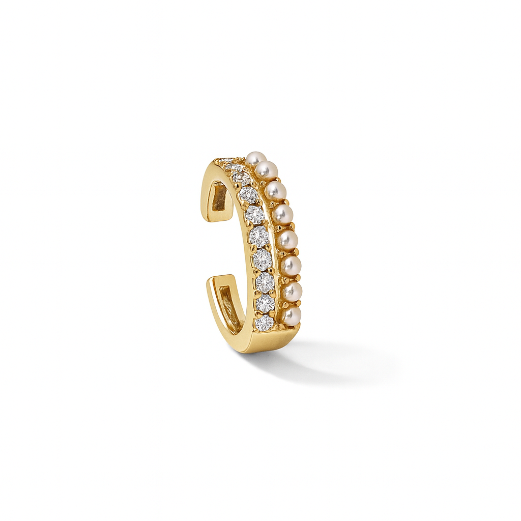 Yellow gold, pearl and diamond ear cuff. Sold individually, includes one ear cuff.