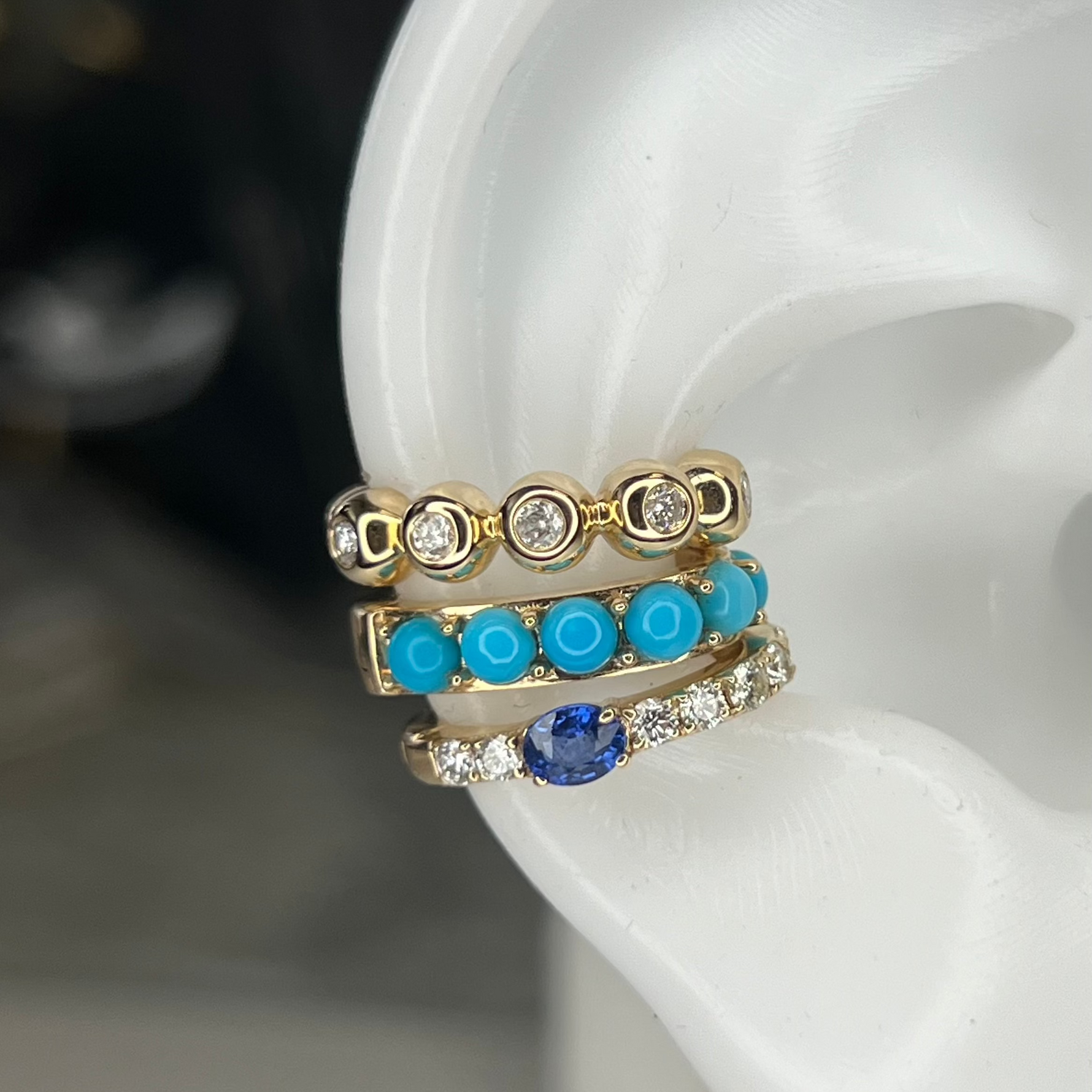 Yellow gold turquoise earcuff. Sold individually. includes one earcuff.