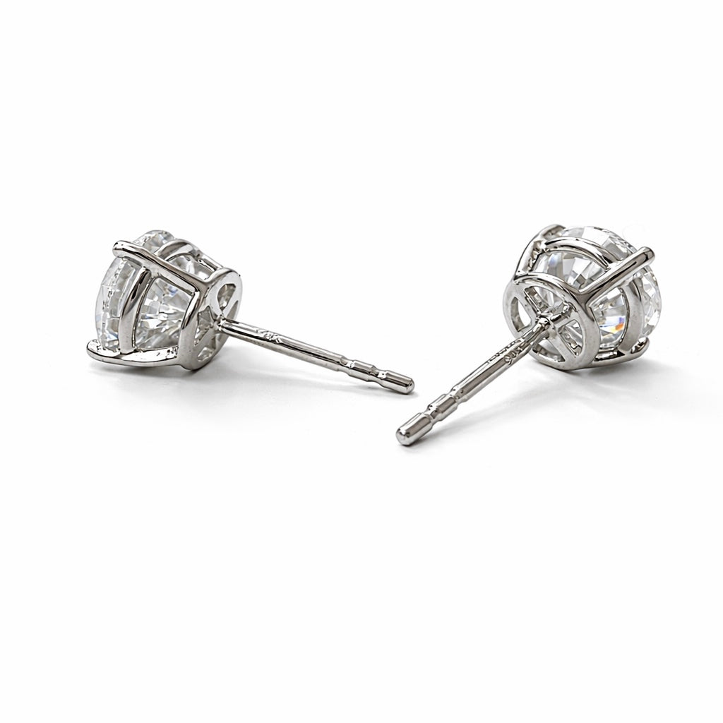 14K white gold lab diamond earrings on 3 prong martini setting and screw back.