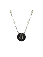 Sterling silver Caridad del Cobre pendant on silver with fresh water pearls. This coin size is roughly the size of a nickel.