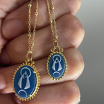 A collaboration that feels both sacred and artful, this pendant unites Santayana’s beloved Caridad del Cobre design with Frank Ronay’s signature hand-carved agate, transforming devotion into fine art. The blue-and-white cameo is luminous and serene, carved in agate that seems to glow from within, capturing the calm strength of Cuba’s patron saint.