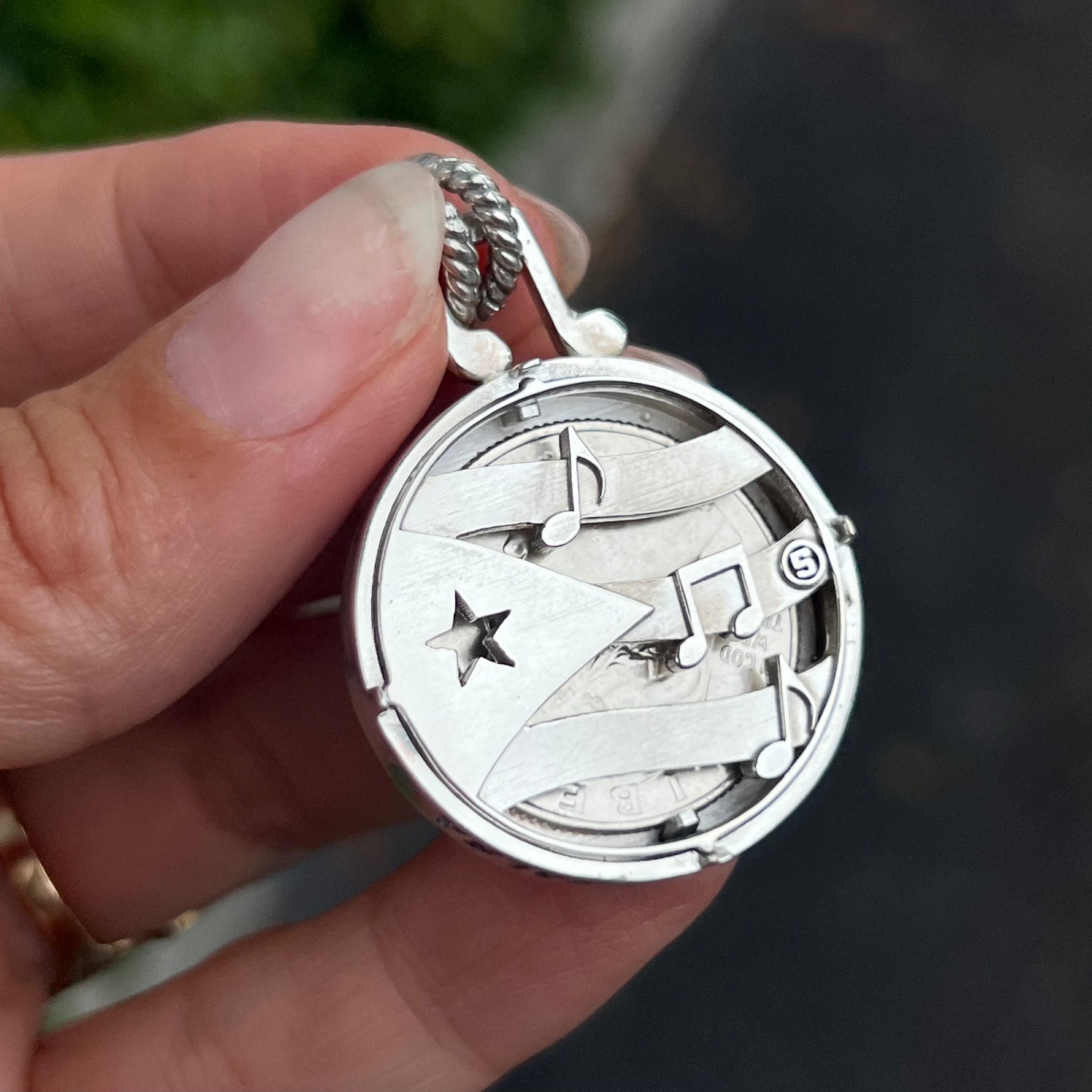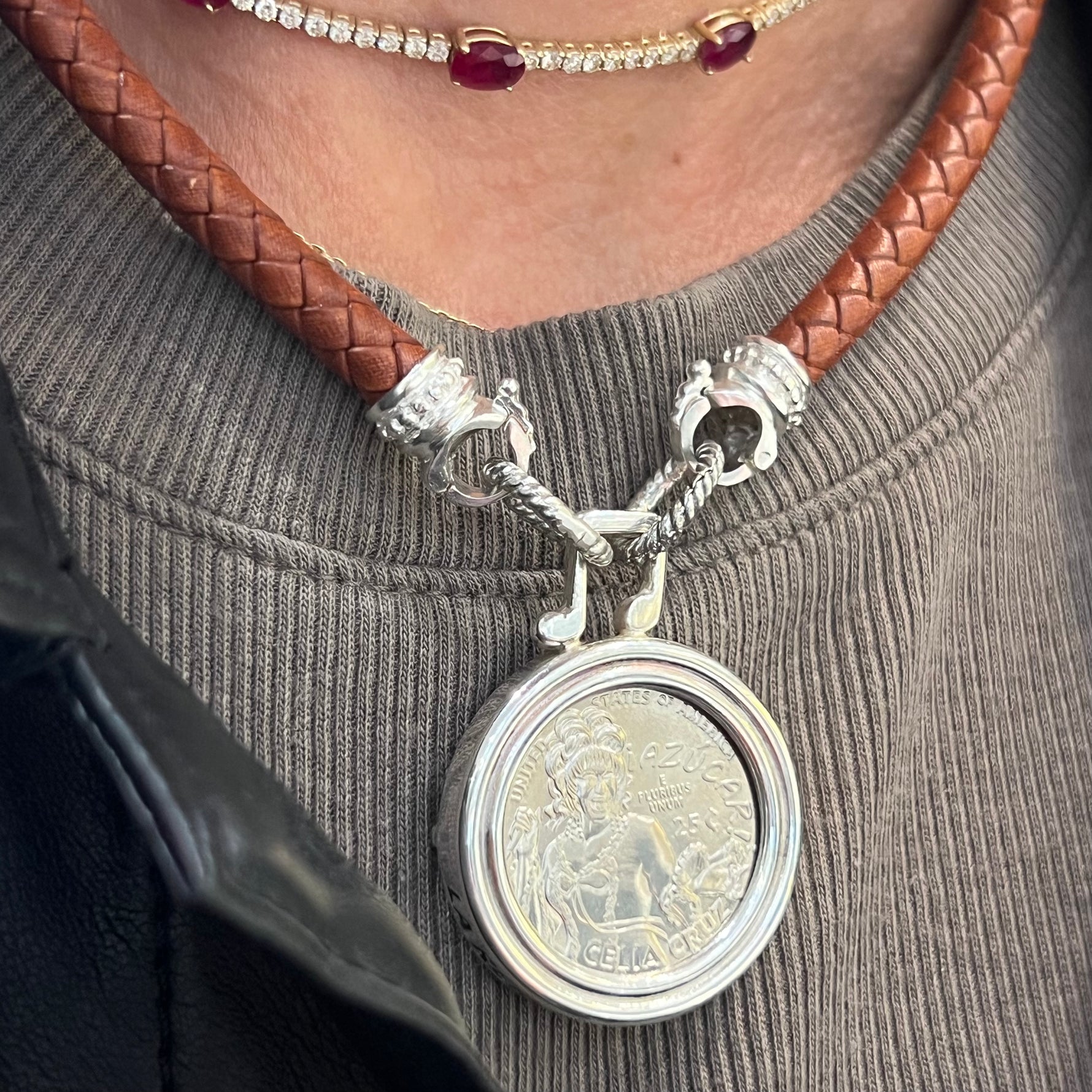 Celebrate the legacy of the Queen of Salsa with our exclusive Celia Cruz Quarter Pendant. This meticulously crafted piece features the limited-edition U.S. quarter honoring the iconic Celia Cruz, beautifully mounted in a custom-designed pendant setting.